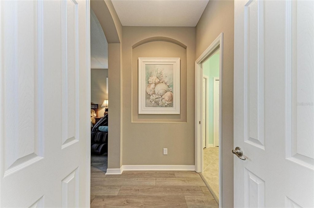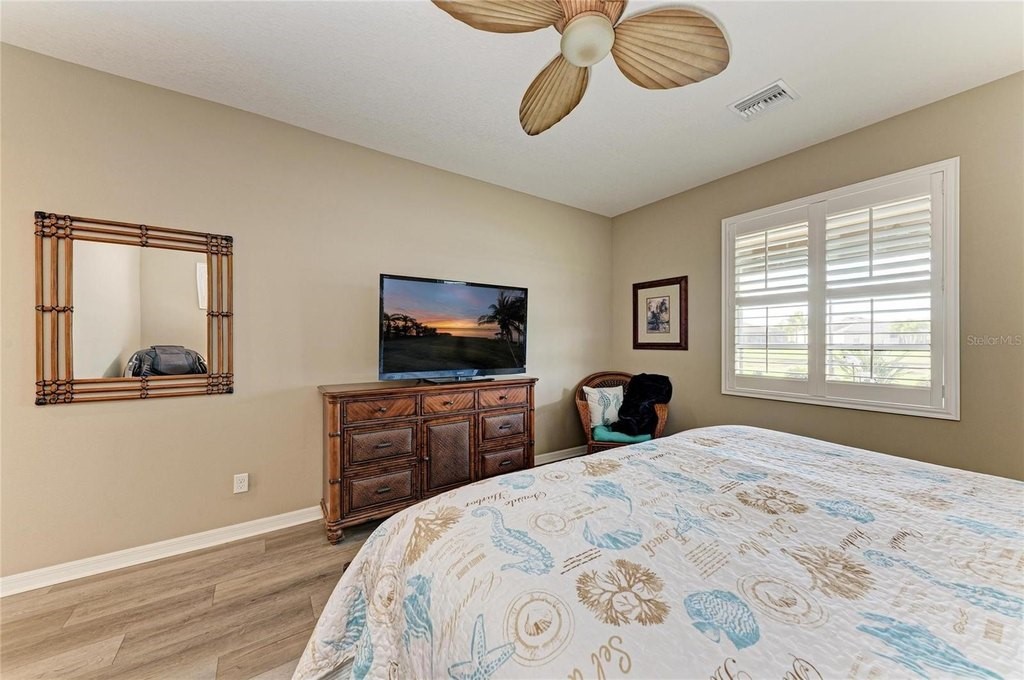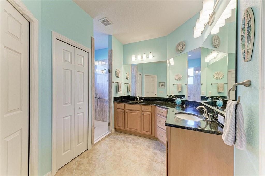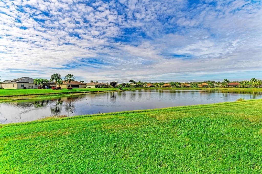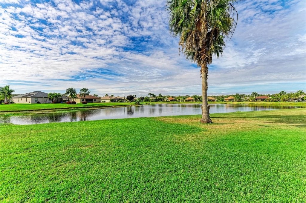 Welcome to this beautifully maintained one-level home in the quiet, highly desired community of Gamble Creek Estates, offering peaceful lake views and an inviting pool as the backdrop to effortless Florida living. Filled with natural light and tall ceilings, the home offers an easy, livable layout designed for everyday comfort. The expansive kitchen features 42 maple step-and-stagger cabinetry with crown molding, granite countertops, stainless-steel appliances, a corner walk-in pantry, and counter-height bar seating, all opening to the dining area and spacious great room with a custom entertainment wall unit. The main living space is an ideal layout for relaxing, gathering, and entertaining. Two sets of sliders lead to the covered lanai and pool area overlooking tranquil lakefront views, abundant birdlife, and colorful evening skies, along with an additional paver patio perfect for sunning or outdoor seating. The private primary suite enjoys lanai views and includes an updated en-suite bath with double vanities, a new walk-in shower, a private water closet, and a spacious walk-in closet. A split-bedroom design places the additional bedrooms and full bath on the opposite side of the home, ensuring comfortable privacy for guests. The laundry room has been thoughtfully updated with a utility sink and upper cabinetry. Numerous recent improvements such as luxury vinyl flooring in all bedrooms, fresh interior and exterior paint, plantation shutters, updated patio pavers, new solar panels for pool heating, enhanced lanai and landscape lighting, new lanai screens, and an invisible yard fence all contribute to a beautifully refreshed, move-in-ready home. The 3-car garage features epoxy floors, built-in cabinetry, and ceiling-mounted storage racks, while new and meticulously manicured landscaping and paver walkways enhance curb appeal. Very convenient location within easy reach of I-75, excellent medical facilities, a variety of shopping, restaurants, and everyday conveniences. Just a short drive to St. Pete and Sarasotas world-class beaches, as well as the Ellenton Outlets, University Town Center, and the new Mote Aquarium. Gamble Creek also offers easy access to the Tampa, Sarasota, and St. Pete airports, and is only 3 miles from the new Parrish Community Park. A beautifully maintained home offering effortless, comfortable living that is ready for its next owner to enjoy.